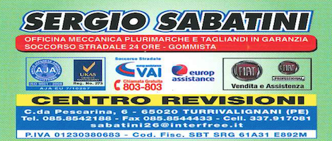 Sabatini Sergio a Turrivalignani è un’autofficina che offre un trattamento all inclusive quando la propria vettura è vittima di un incidente, di un guasto o semplicemente deve sottoporsi a una doverosa manutenzione, oltre che a revisioni e tagliandi. Il personale, cortese e disponibile, è capace di operare per riportare ogni veicolo al miglior stato possibile, con interventi tempestivi ed efficaci in qualsiasi circostanza, dalla ricarica dell’aria condizionata al cambio dell’olio, dalla convergenza e bilanciatura degli pneumatici alla completa riparazione dei motori di qualsiasi marca. I servizi includono anche l’auto di cortesia, un servizio di carro attrezzi e soccorso stradale attivo 24 ore al giorno e 7 giorni su 7, compresi i festivi, nonché la presa e la consegna a domicilio delle vetture. Ecco una lista dei servizi che è possibile richiedere presso l’officina di Sabatini Sergio a Turrivalignani: